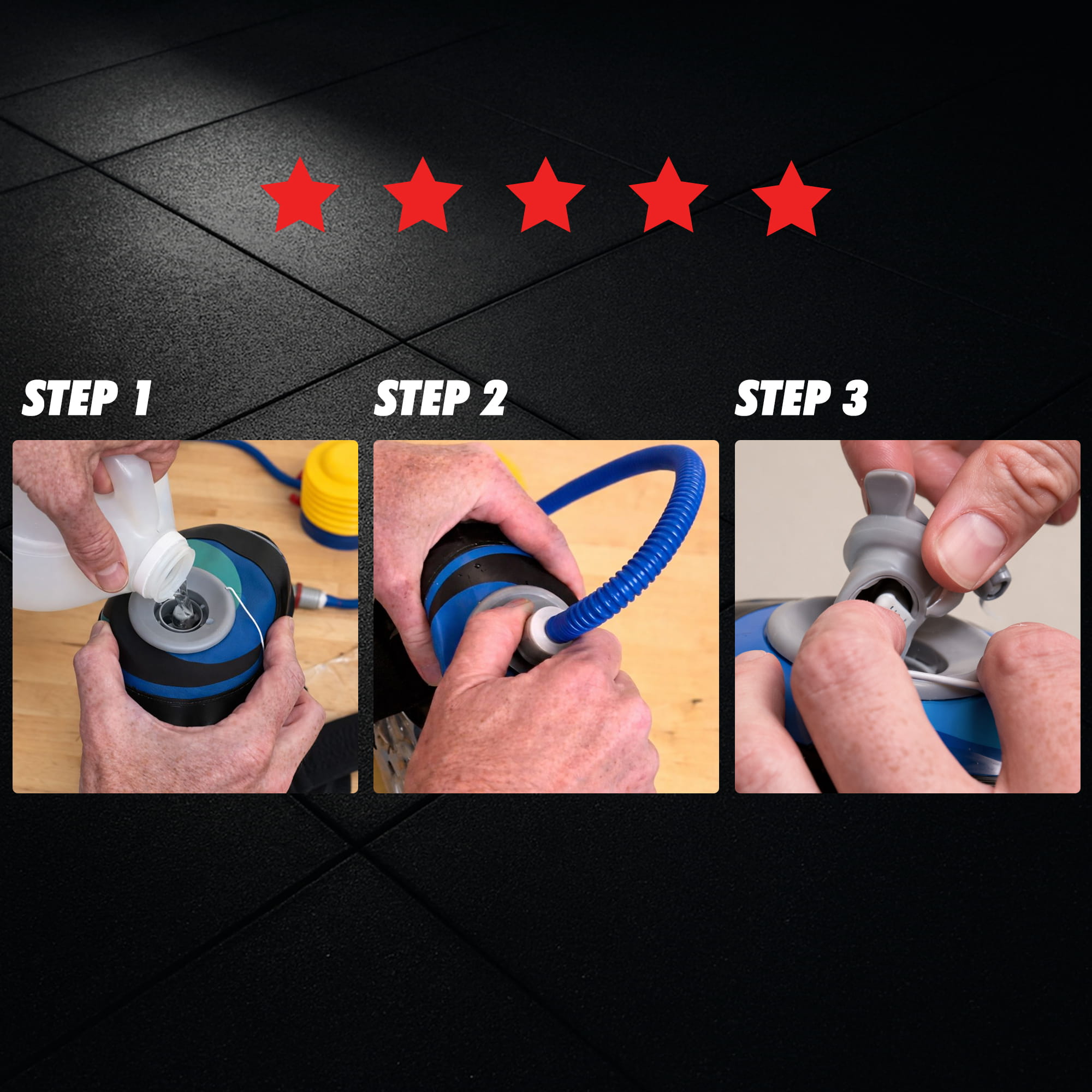 - SZYBKA INSTALACJA: Naciśnij przycisk w zaworze raz, aby odblokować zawór do napełnienia wodą. Trzymaj go pod kranem, aż osiągniesz pożądaną wagę worka. Możesz dodać atramentu aby zabarwić wodę. Wciśnij przycisk ponownie, aby otworzyć zawór na powietrze. Zamocuj pompkę, napompuj, aż zbiornik będzie twardy. Możesz zacząć trening!