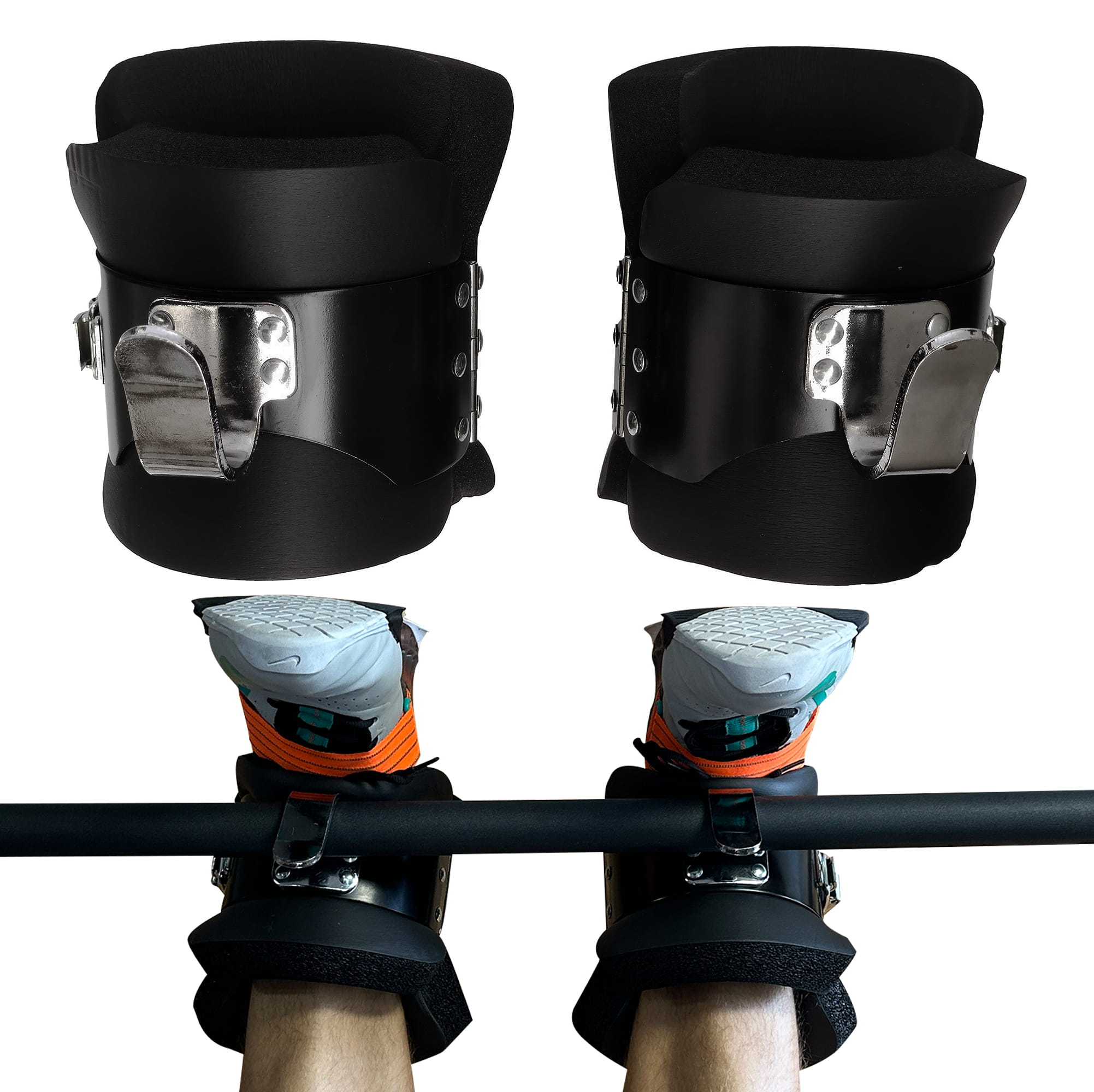 - WYTRZYMAŁA KONSTRUKCJA - Buty inwersyjne są wytrzymałe nawet na obciążenia 150 kg. Posiadają solidne metalowe haki zamocowane na 4 śrubach. Buty inwersyjne mają również wytrzymałą metalową klamrę z dodatkową blokadą, aby zapewnić bezpieczny trening w zwisie.