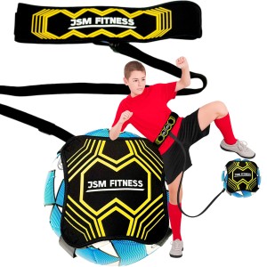 Trenażer do piłki nożnej JSM FITNESS to rewolucyjne narzędzie dla piłkarzy w każdym wieku. Składający się z pasa biodrowego i elastycznej gumy z opaską na piłkę, po kopnięciu powoduje że piłka wraca do naszej stopy.
